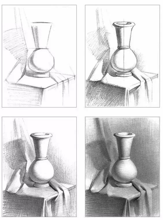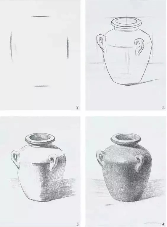 When drawing a single still life, pay attention to proportions and black, white and gray. Learn to use geometric shapes to summarize. A tall pot can be summarized by a cuboid and a cylinder; a square pot can be summarized by a square. It is better to be square than round!